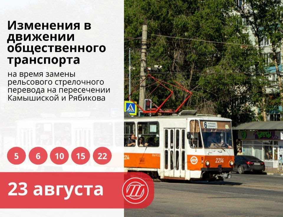 ❗️Вниманию ульяновских пассажиров: пять трамвайных маршрутов изменят свои маршруты Сегодня, 23 августа с 10:00 до 16:00 маршруты пяти трамвайных маршрутов изменятся из-за замены стрелочного перевода на Камышинской, предупреждает «Ульяновскэлектротранс». Подробности - на ultoday73.ru