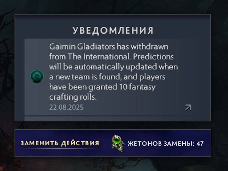 Валв выдали 10 бесплатных «жетонов замены», в качестве компенсации Гладиторов которые покинули Инт