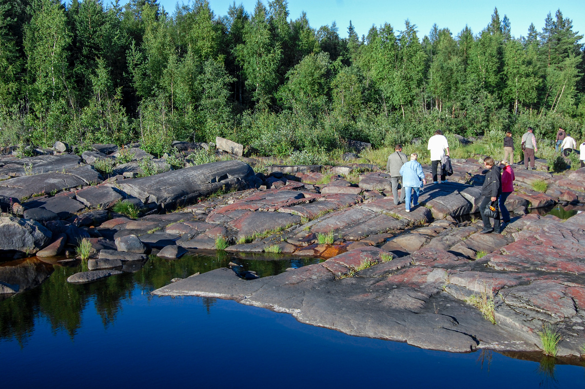 Наша поездка на петроглифы. Петроглифы, и карельские в частности - это выбитые в камне сценки как правило охоты и сражений наших далеких предков. С погодой нам повезло - было солнечно, тепло, без ветра. Правда, идти пришлось по руслу так называемой каменной реки. Это русло равномерно присыпано валунами различной величины, вот по ним нам и предстояло идти. В Карелии вообще все красиво, но вот это место запомнилось своей необычностью и какой-то камерностью. Очень интересная и впечатляющая экскурсия.