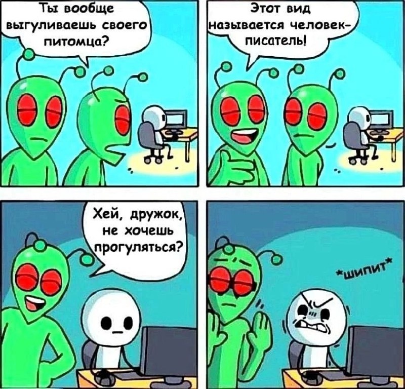 Если вы видите фильм, где писатель сидит перед ноутбуком в толстенном халате, вальяжно попивая кофе, знайте: это не про уют и какую-то невероятную "атмосфЭру". У человека просто нет времени, чтобы привести себя в порядок, а чашка кофе далеко не первая за день. На этом у меня всё😀