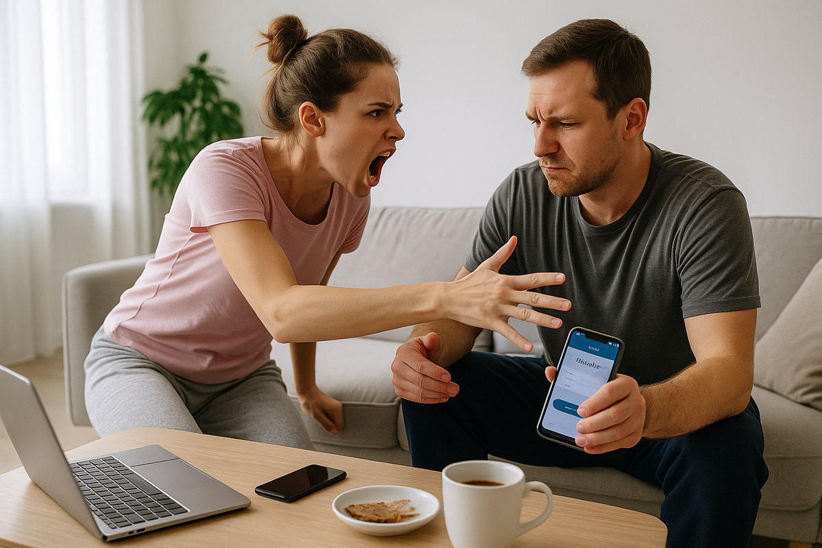 — Руки от телефона убрал! — закричала Юлия и резко выхватила устройство из рук мужа. — Это мои деньги, понял?!
