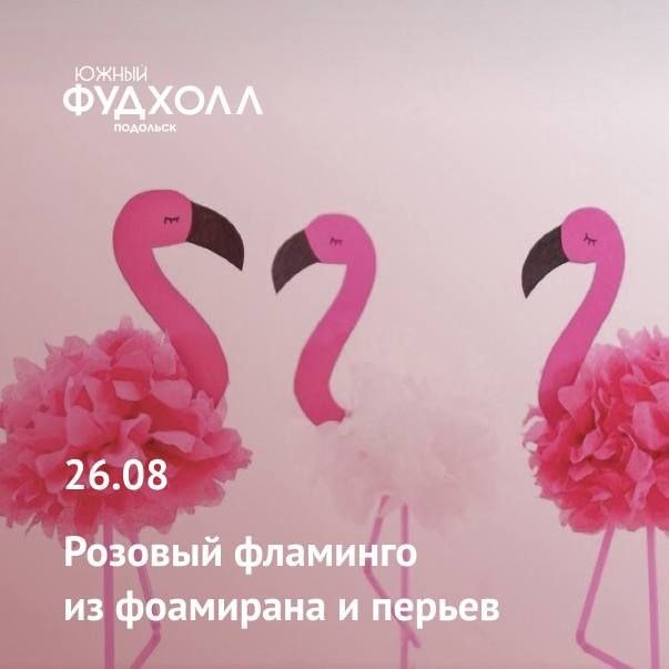 26-27 августа в 19:00 | Мастер-классы на Фудхоллах Южный и Центральный 26.08 — "Розовый фламинго" Создадим изящную птицу счастья из нежного фоамирана и натуральных перьев. Ваша поделка будет переливаться на свету и станет эксклюзивным украшением интерьера. 27.08 — "Искусство чеканки" Освоим древнюю технику обработки металла. Под руководством мастера каждый создаст медное панно с изысканным рельефным узором — настоящее произведение искусства для вашего дома. Откройте в себе талант художника и ремесленника! Больше мероприятий, мастер-классов и выступлений в нашем телеграм-канале 🫶 ✅ Мероприятия Подольск https://dzen.ru/id/66ed500f7b5671493eca3fd6 http://vk.com/podolsk_events http://dzen.ru/podolsk_events