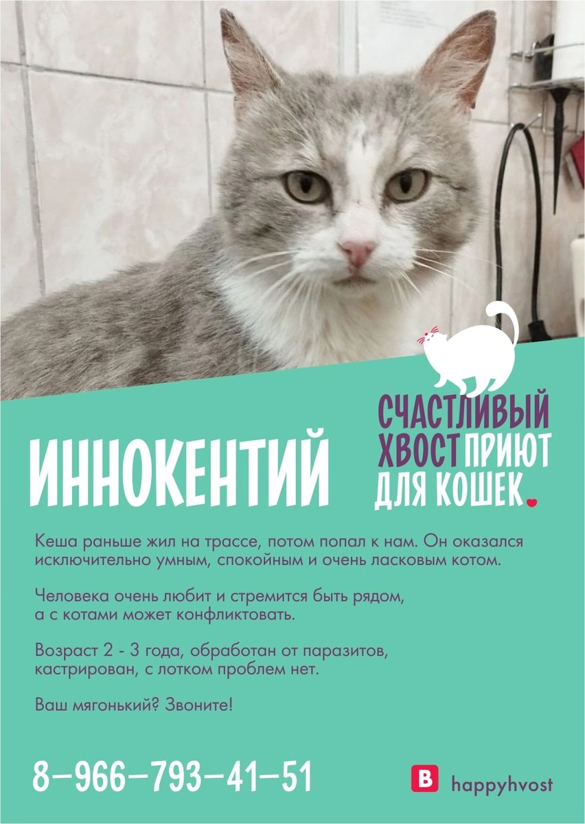 Да, у него были сложности со здоровьем, но сейчас он стабилен. Всё расскажем! А вообще-то Кеша не кот - золото! И ему очень нужна семья! Если вы выбрали конкретного котика и хотите за ним приехать, предупредите нас, пожалуйста, заранее, позвонив по номеру телефона 8-966-793-41-51 и обязательно захватите переноску! Ждем вас 24 августа с 12 до 19 часов. IMALL, 4 этаж, рядом с фудкортом. До встречи 🐈