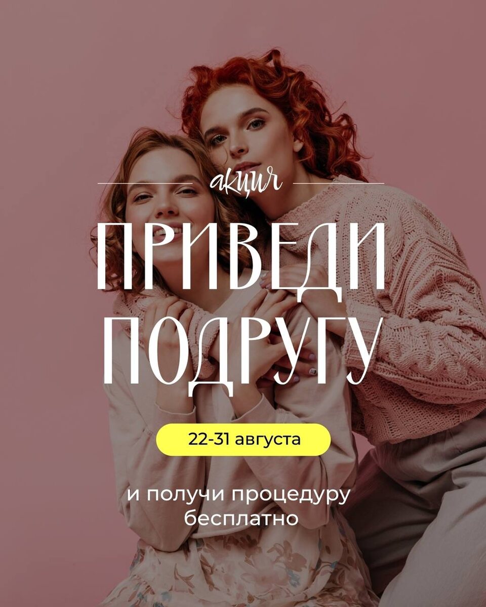 🔥 ГОРЯЧИЕ АКЦИИ АВГУСТА 🔥 Собрали для вас выгодные предложения в одном месте ⏰Акция «Счастливые часы» ⏰ • скидка -30% на услуги салона • действует в будни • для новых клиентов • перечень услуг уточняйте в лс группы • срок акции с 21.08 по 31.08 💃 Горящие сертификаты 1+1 💃 • приходите и приводите подругу • покупайте сертификат от 3000р. • подруге/маме/сестре сертификат такого же номинала в подарок • для всех клиентов салона • срок акции с 25.08 по 31.08 ✅ Любая зона лазерной эпиляции - 500 р. ✅ • для новых клиентов • всех, кто не был у нас более 3 месяцев • срок акции с 21.08 по 31.08 🌸 Приведите подругу и получите процедуру бесплатно 🌸 • мама/подруга/сестра делает любую процедуру • вы получаете такую же БЕСПЛАТНО • срок акции с 22.08 по 31.08 Записывайтесь прямо сейчас https://t.me/vashesiyatelstvo *Скидки не суммируется с другими скидками и акциями компании Ждем вас за красивой и ухоженной кожей 🥰