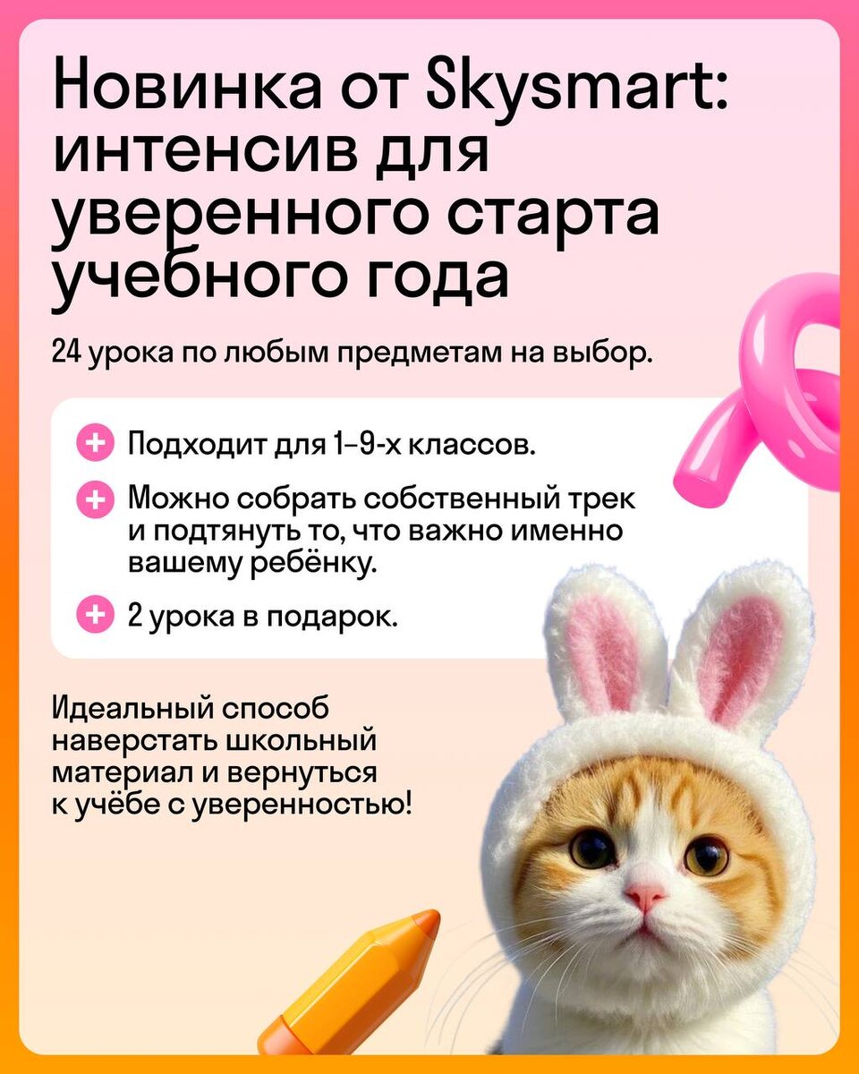 🔥Новинка: интенсив для уверенного старта школы Больше не нужно записываться на кучу разных курсов, чтобы освежить знания после лета. Просто приходите на интенсив и подтягивайте нужные предметы. ⭐️24 урока по любым предметам на ваш выбор. ⭐️Подходит для 1–9-х классов. ⭐️Можно собрать собственный план развития. ⭐️Запишитесь сейчас, а учитесь в сентябре. ⭐️Подарим 2 дополнительных урока Записывайтесь по ссылке https://go.skysmart.ru/int23, используйте промокод KINO и получите скидку до 40%.