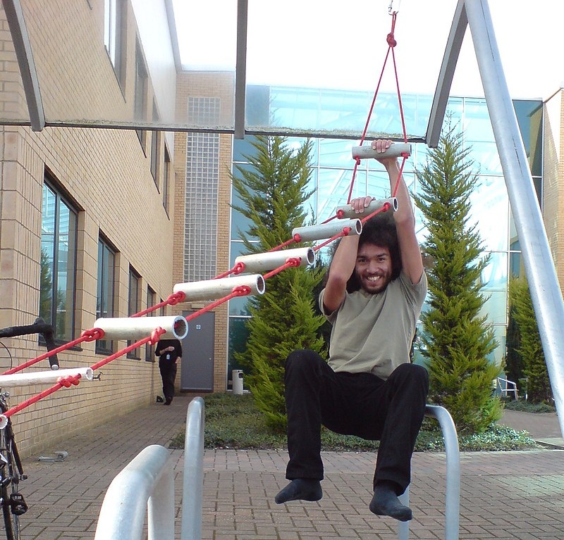 Чтобы заниматься скалолазанием, нужно быть в целом очень сильным и иметь сильные руки, в частности. Знаю, сейчас кто-нибудь начнёт рассказывать про каких-нибудь уникумов, у которых с рождения нет конечностей (всех или некоторых), но они всё равно лезут в горы и покоряют их. Но это примерно из той же оперы, что и люди с СИНДРОМОМ ДАУНА или слепоглухонемые, среди которых тоже есть те, кто закончил вуз и защитил диссертацию, однако общая статистика говорит не в их пользу. Так вот, скалолазу очень нужны сильные руки. Сделать их таковыми можно разными способами - например, поднимая гири или штангу, однако в горах нужен не бодибилдер, а человек цепкий, сухой и лёгкий, способный подтягиваться на одной руке и висеть на одном пальце. Как раз для развития мышц верхней части туловища, преимущественно - верхних конечностей, была создана ЛЕСТНИЦА БАЧАРА. С виду это простая верёвочная лестница, у которой перекладины сделаны из металла, денева или пластика. Но разница в том, что подвешивают её, ка