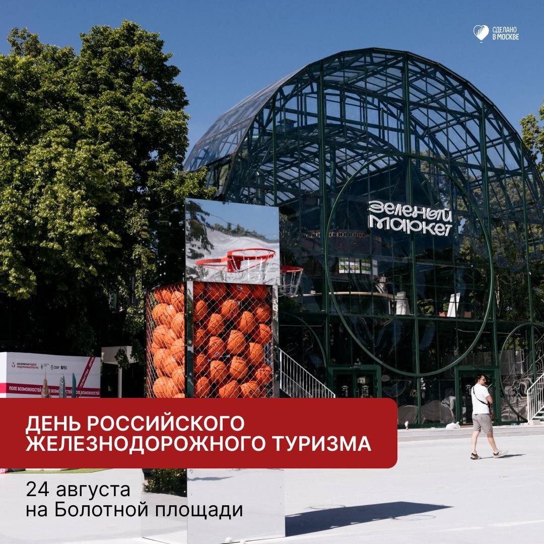 День российского железнодорожного туризма на Болотной площади❤️ 🐚24 августа на «Зеленом маркете» все вместе отмечаем 20-летие компании «РЖД тур». Что интересного мы для вас приготовили? 🐚С 15:30 до 19:00 на Болотной площади развернутся интерактивные зоны, где гости смогут узнать о самых интересных железнодорожных путешествиях по России и зарубежью. Также для вас будет работать специальная фотозона «Выбери свое путешествие» – любой желающий сможет сделать памятные снимки на фоне ярких локаций. 🐚В рамках развлекательной программы также пройдет презентация железнодорожных туров – на экранах будут транслироваться видеоролики о путешествиях на поездах. 🐚Мероприятие можно посетить всей семьей! Для самых маленьких гостей мы подготовили мастер-классы по рисованию, а взрослые смогут принять участие в конкурсах с главными призами – путешествиями от «РЖД Тур» и «РЖД Бонус». Вход на мероприятие свободный и не требует регистрации. Всех ждем! 📆 24 августа, начало в 15:30 📍 Болотная пло