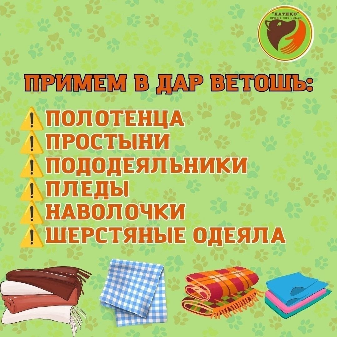 На постоянной основе испытываем нужду в старой ветоши: простыни, пододеяльники,полотенца,шерстяные одеяла, пледы.. ❗❗❗Одежду везти не нужно ⚠⚠⚠ Все комнаты стационара заняты, уборка и смена подстилок происходит ежедневно, ветошь улетает со скоростью света.То, что можно постирать- стирается. Но не редко ветошь приходит в негодность. Друзья, посмотрите свои залежи старого постельного белья, избавьтесь от ненужного и помогите нам обеспечить особенным животным достойный уход🙏 Бельё может быть с небольшими дырками, потёртостями, НО ЧИСТОЕ! Можно передать посылки в городе или привезти непосредственно в приют,либо в точки сбора vk.com/wall-90005893_146295 В исключительных случаях постараемся забрать самостоятельно, если территориально вы по пути наших маршрутов. 8-951-479-75-89