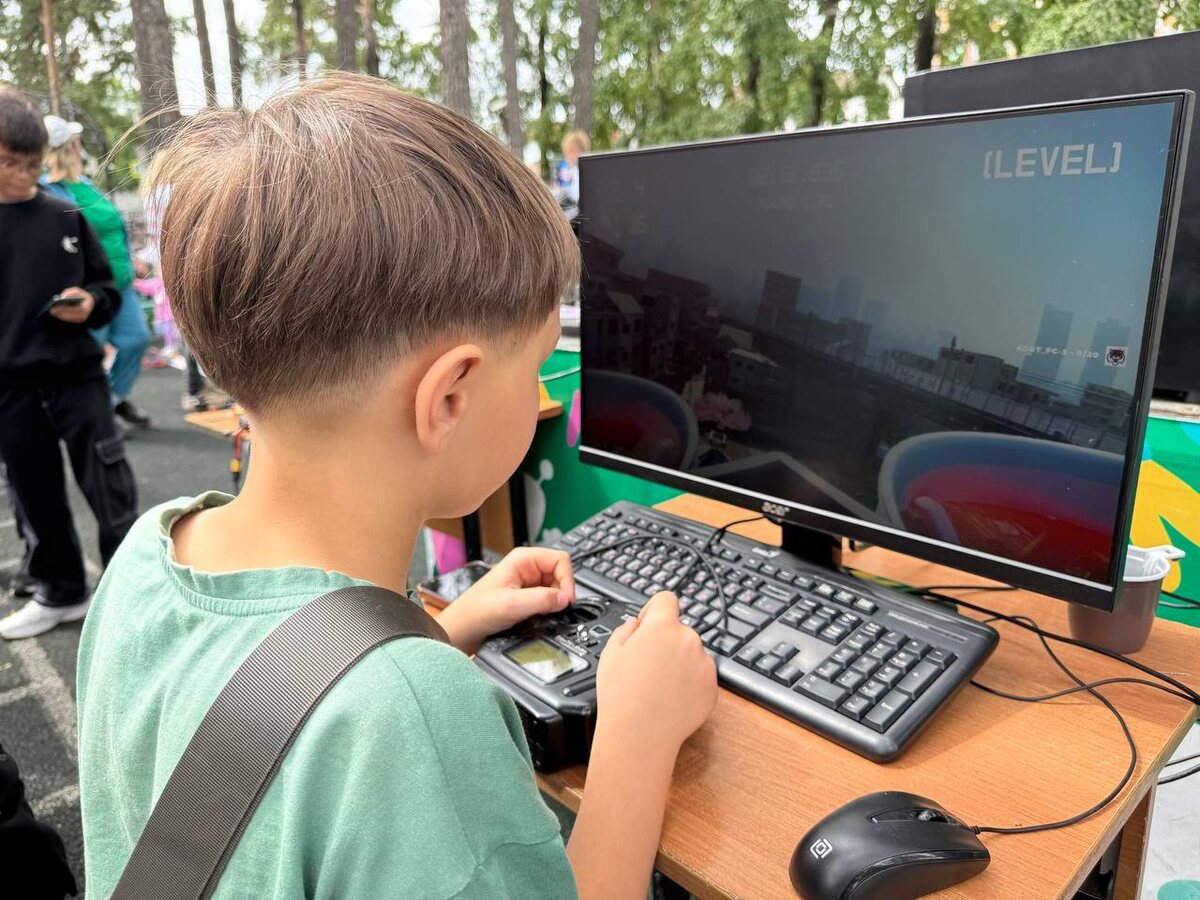 Центр беспилотных компетенций и Федерация гонок дронов Амурской области представили свою обучающую площадку на семейном форуме «Счастье быть вместе». - Мы представляем направление беспилотных летательных аппаратов, - отметил президент федерации гонок дронов Амурской области, руководитель Центра беспилотных компетенций Вадим Чанышев. – У нас есть импровизированная площадка с компьютерами, где каждый желающий может попробовать себя в роли пилота. Кроме того, у нас есть двое пилотов, которые показывают реальные полеты на настоящих дронах. И отдельный монитор, на котором выведена картинка. Любой желающий может подойти посмотреть либо в монитор, либо в очки и уже окунуться в пилотирование. Здесь также у нас представлены импровизированные, спортивные ворота, где наши спортсмены проходят полосы препятствий. Участники форума могли попробовать себя в роли пилотов летательных аппаратов.