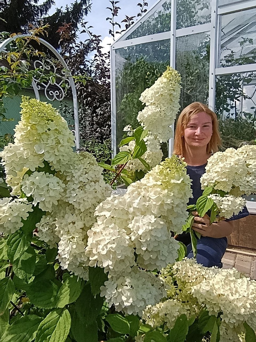 Гортензия Мэджикал Мунлайт! Огромные шапки, при довольно скромном размере куста, не высокая!