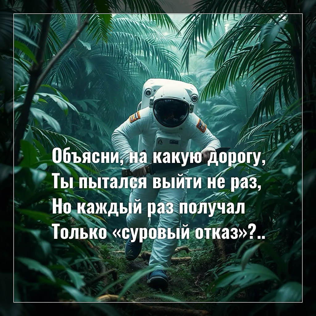 Объясни, на какую дорогу, Ты пытался выйти не раз, Но каждый раз получал Только «суровый отказ»? А много ли раз ты пытался? Может быть был не готов? Как всё легко в голове, Для действий не нужно слов, Для действий нужно движение, Намерение и шаги, Кто просто внутри мечтает, От целей своих далеки, Нужно чуть-чуть ещё сдвинуться, С места уже знакомого, Там, где тебе уже скучно, Там, где мечтать только здорово, Развитие будет в усилиях, В дороге, проложишь которую, Главное не искать её Ровную и готовую.