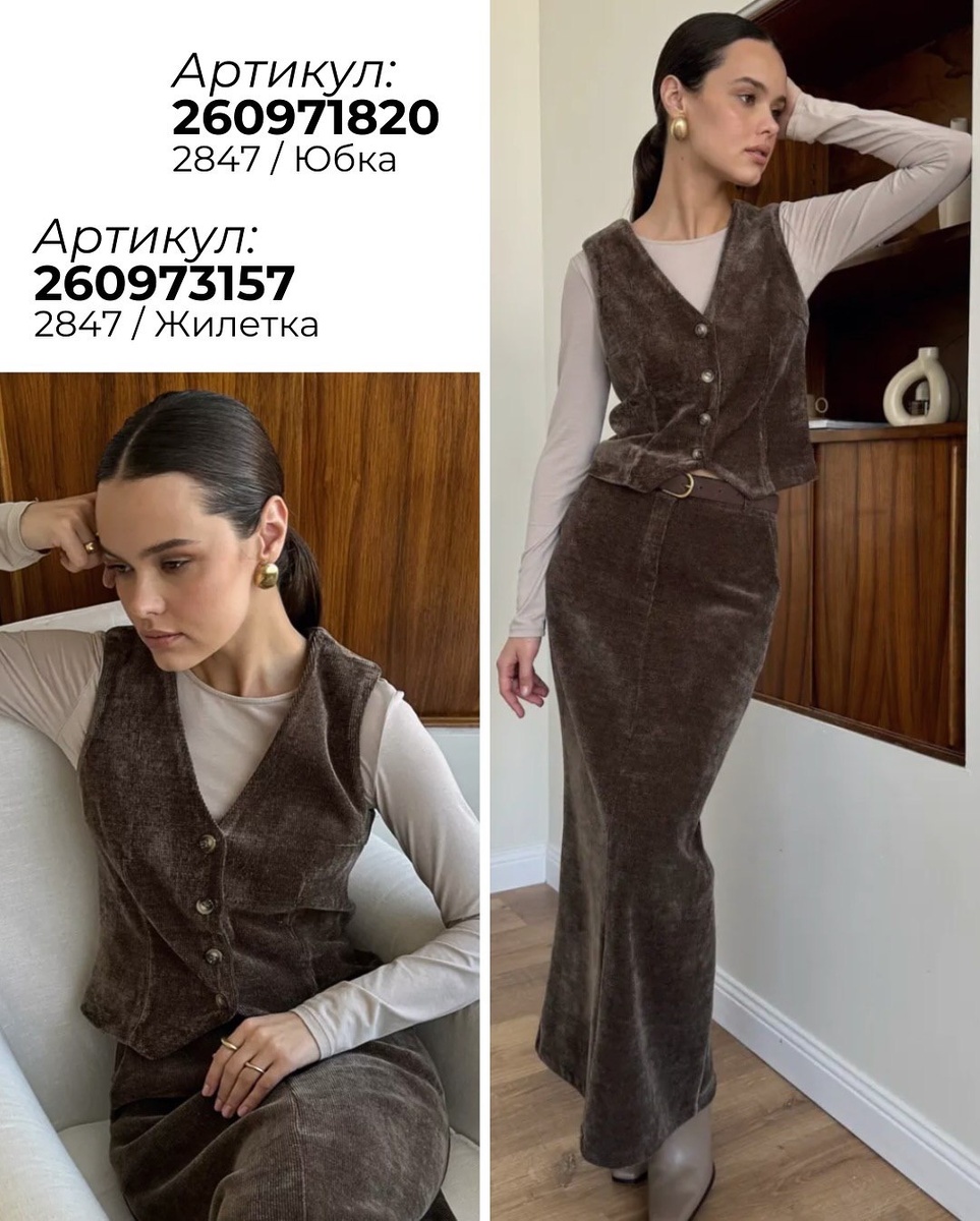 Совет стилиста: надевайте поверх тонкого лонгслива (молочный/бежевый) или на голое тело с цепочкой-колье. Ремень на талии добавит «часовую» линию и соберёт комплект с юбкой (п. 1).