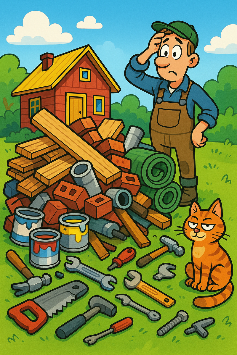 🏡 В прошлом году Эмиль заявил, что хочет на даче собственный домик. Мы с мужем недальновидно поддержали эту идею. Потому что свой детский домик — это страшно круто! Мы решили, что будем очень крутыми родителями! И даже не подозревали, насколько крутыми, потому что идея подошла бы для проекта «Миссия невыполнима». Муж с февраля по июль рисовал проект и в итоге сдался: «Всё выходит слишком грандиозно, времени не хватит, давай кого-нибудь наймём». Оказалось, что в Уфе мастера умеют строить либо маленькие домики для кукольных чаепитий, либо… ну, всё. А Эмиль хотел домик для настоящих мальчиков, со вторым этажом и лофтом. Стоило мне заикнуться какому-нибудь мастеру о нестандартном проекте — и он сразу уходил в глухое молчание, как партизан на допросе. В августе нашли мастера, нарисовали проект, выдали аванс… и мастер исчез. Подозреваю, что ушёл в запой. Появился только в октябре с каркасом, когда дачный сезон был закрыт. Хотя бы аванс вернул, и на том спасибо. Весной нас осенила гениальная