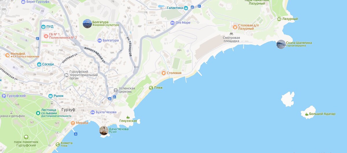 Возвращаясь из Черноморского, мы не могли не заехать в Ялту, и далее наш маршрут лежал через Гурзуф. Гурзуф — посёлок городского типа на южном берегу Крыма, входит в городской округ Ялта Республики Крым. Дата основания:555 год Смутили цены на фрукты, абрикосы 400 рублей, персик 450 рублей, инжир 500 рублей, ну и все остальное в таком масштабе. В Черноморском, для сравнения, персик 180 рублей, инжир 250 рублей. Разница, надо сказать, весьма существенная. Деревья инжира стоят повсюду, но плоды мелкие и незрелые. Пробовали их на вкус, и стоит отметить - есть вы их точно не будете, видимо дереву критически не хватает воды, плоды сухие и горькие. Какое то время мы хорошо поплутали по узким улочкам, пытаясь понять географию этого города. Лабиринт из улиц и критические уклоны, вот что можно тут увидеть. Хорошо, что за окном ранее утро, большая часть местного населения и отдыхающих еще сладко спит. Дворы переполнены машинами, многие проезды перекрыты, общее автомобильное движение существе