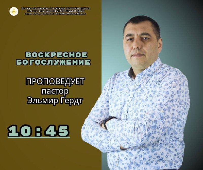 Добро пожаловать на воскресное Богослужение! 📅 24.08.2025 🟡10:45 📍Сургут, пр-т Комсомольский 24 📎 Пастор Эльмир Гердт ✝️ Если вы планируете быть с нами online переходите по ссылке 📺 https://rutube.ru/channel/41683559/ не забудьте подписаться ✍️ 💙https://vk.com/surgutcerkov