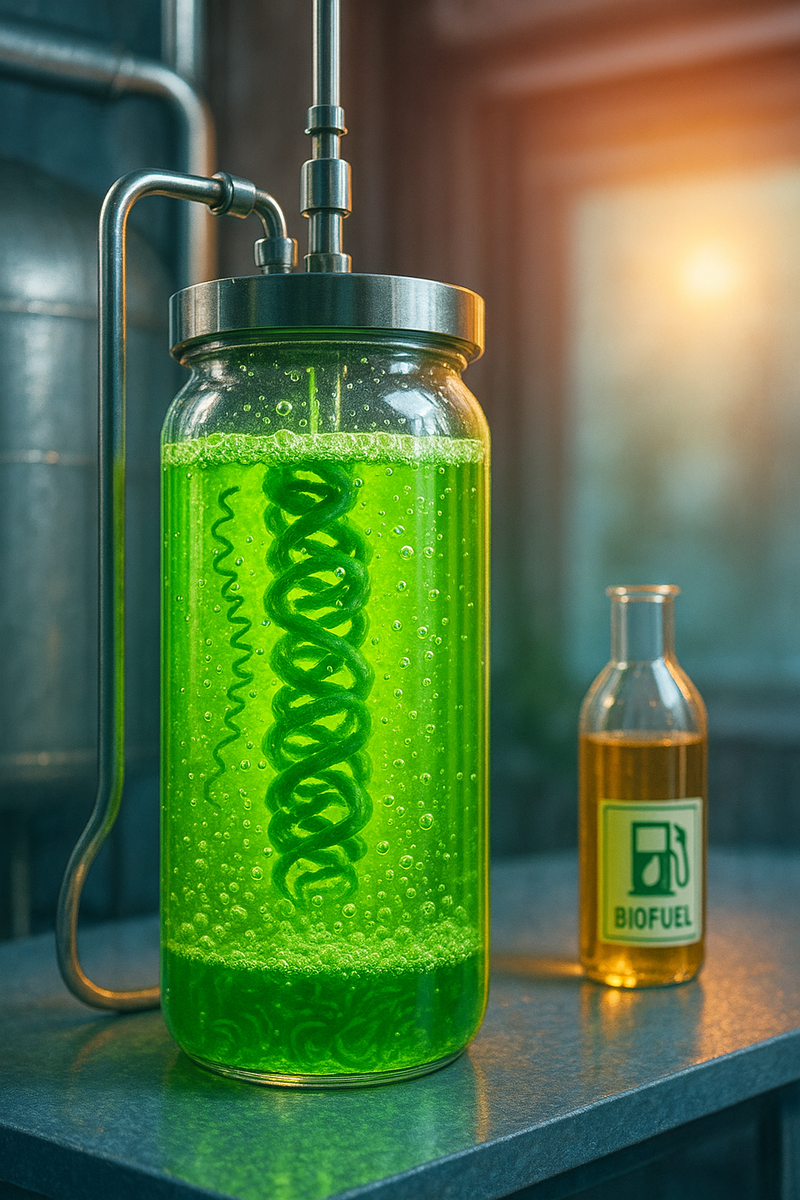 Изменение климата требует радикальных мер по снижению выбросов CO₂. Одним из необычных решений становятся… микроскопические водоросли. Эти простые организмы фотосинтезируют, превращая углекислый газ и солнечный свет в органическое вещество и кислород. В огромных фотобиореакторах водоросли растут в колоннах, поглощая CO₂ из промышленных выбросов. Затем их массу можно использовать для производства биотоплива, кормов и даже косметики. Таким образом, мы получаем двойную выгоду: удаляем парниковый газ и создаём сырьё. Фотобиореактор представляет собой прозрачную трубу или мешок, через который пропускают газ. Водоросли поглощают CO₂, получая свет от ламп или солнечных лучей. Они растут настолько быстро, что их массу можно собирать каждый день. В отличие от леса, где фотосинтез зависит от сезона, реактор работает круглый год. Водорослевую биомассу сушат и превращают в гранулы, из которых добывают масло. Это масло можно перерабатывать в биодизель. Оставшийся «жмых» идёт на корма для животных и