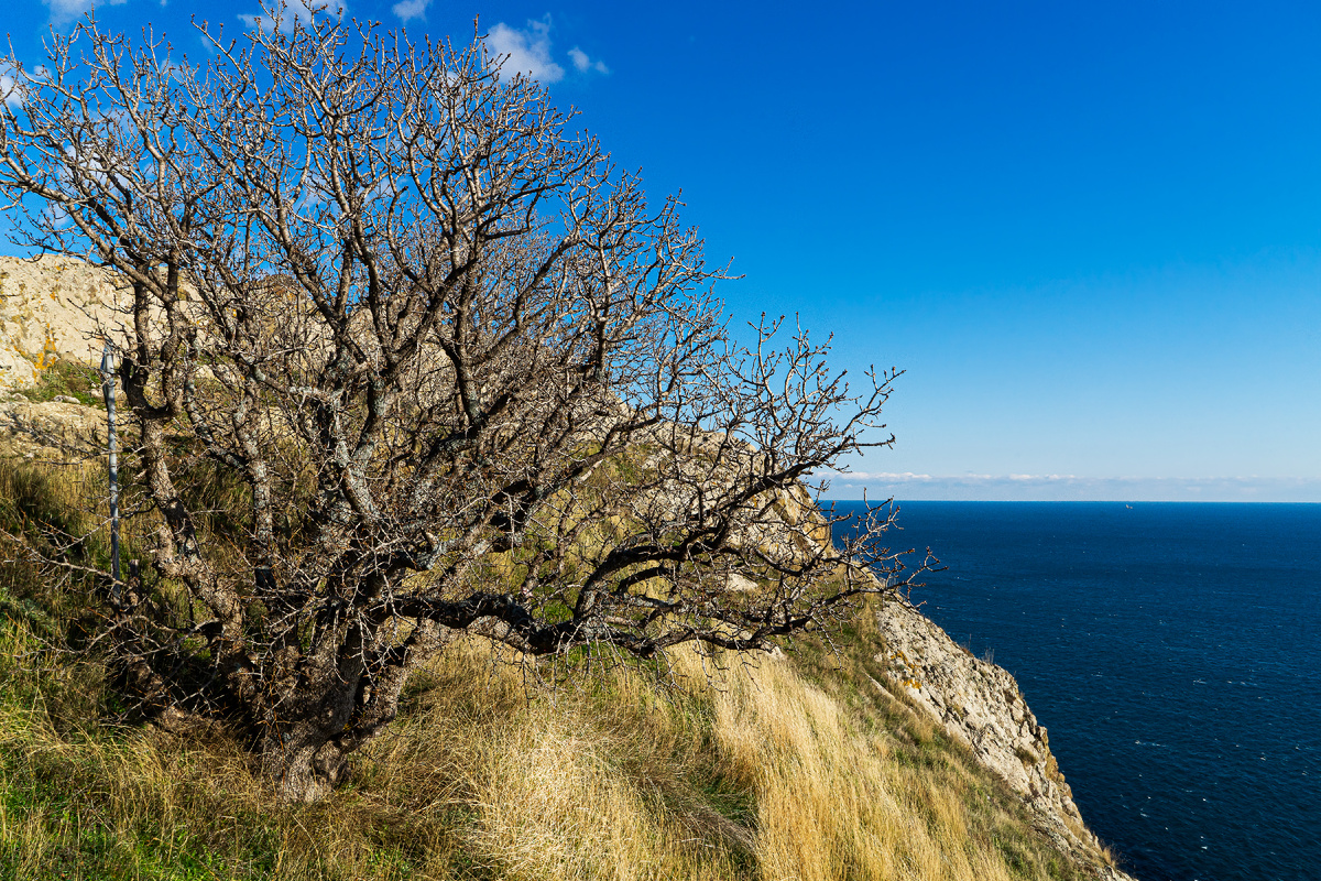 К скале примыкает урочище с зарослями вечнозеленых реликтовых кустарников. В мае склоны розовеют от цветущего ладанника, в июне желтеют от жасмина и вязеля, а осенью заросли иглицы пламенеют алыми плодами. Иглицы, кстати, внесены в Красную книгу (хотя по Крыму их огромное количество). В прошлом их почти уничтожили и знаете почему? Они очень хорошо подходили для мётел, так что причиной исчезновения предположительно едва не стали местные крымские дворники.