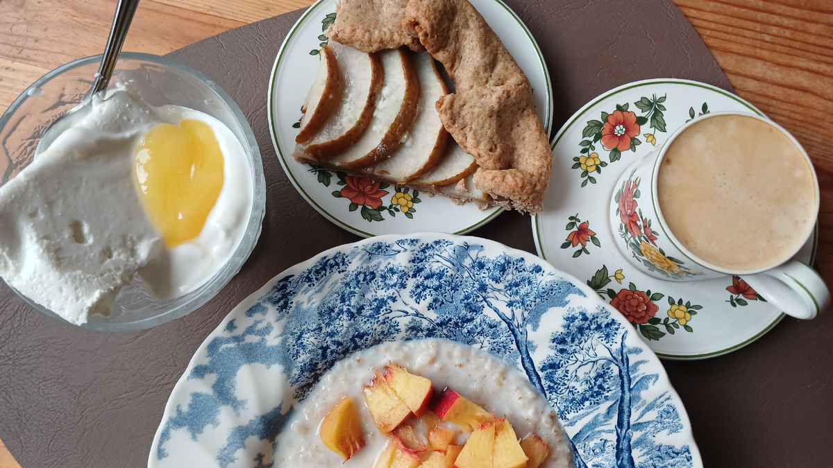 В августе тратим на питание одного человека 272 руб в день. Рассказываю, чем и как можно питаться на такую сумму. 😊 Сегодня у нас день использования заранее сделанных кулинарных заготовок. Я только кашу на завтрак сварила. Все остальное было приготовлено заранее. На завтрак сегодня, мне кажется, самый частый у нас вариант - овсяная каша и творог. В кашу положила ложку кокосового урбеча и нарезала нектарин. К творогу добавила мед. К чашечке кофе - кусок галеты с грушами. Галету пекла на цельнозерновой пшеничной муке. Обед собрала из того, что уже было в холодильнике. Я делала заготовки разных блюд, и вот теперь пользуюсь плодами своего труда 💪 вафли картофельные с беконом, яйцо, пастрома из филе бедра индейки, овощи на десерт снова попила кофе с грушевой галетой. Так что обед сегодня просто достала из холодильника На ужин ели плов с филе бедра курицы и овощи Потом еще заполировали мороженым ("Мишка" на топленом молоке). Вечер пятницы решили отметить 🤩🎉🎉🎉 Меню год назад Про заго