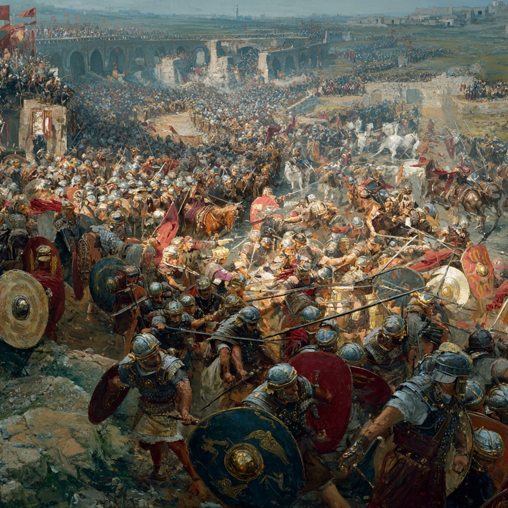 Битва при Лугдуне, состоявшаяся 19–20 февраля 197 года н. э., вошла в историю как одно из крупнейших и самых кровопролитных сражений между римскими легионами. Это событие стало кульминацией борьбы за императорский трон в период, известный как "Год пяти императоров". В этом масштабном противостоянии сошлись армии действующего императора Септимия Севера и узурпатора Клодия Альбина. Результат битвы не только определил судьбу двух лидеров, но и оказал значительное влияние на политическую ситуацию в Римской империи. Период, предшествовавший битве при Лугдуне, был временем беспрецедентной нестабильности в Риме. После убийства императора Пертинакса в 193 году началась ожесточённая борьба за власть, известная как "Год пяти императоров". В этот период пять претендентов на трон боролись за контроль над империей. Септимий Север, талантливый полководец и губернатор Верхней Паннонии, был провозглашён императором своими легионами. Благодаря военному мастерству и политической хитрости он сумел устран