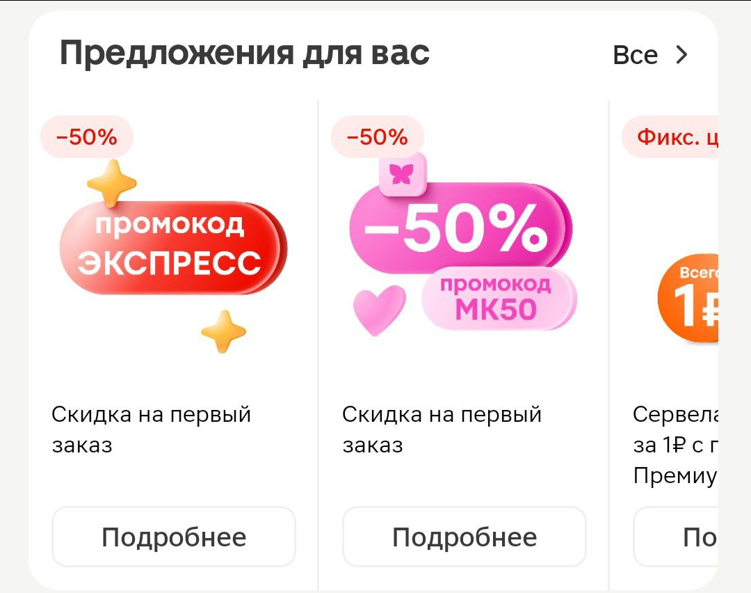 В этот раз у меня только бесплатные товары или со скидкой 50%. Рассказываю уже в 82 раз, как тратить меньше, а получать больше! Зашла на аккаунт, в котором давно не была и ни разу не заказывала доставку. А там прям шикарные предложения! Промокод на 50% на доставку Магнит Экспресс и Магнит Косметик! Я раньше заказывала с блогерскими промокодами на скидку 31% и радовалась, а тут 50%. Магнит Косметик, правда, мне не нужен, у меня огромный запас всего, что там продаётся :) Но продукты надо брать пока дают. Сразу заказала себе продукты для готовки и мороженое в награду. Скидка 50%, доставка бесплатная, ещё и 56 бонусов отсыпали. Проверила все сроки и качество товаров, если что можно нажаловаться и Магнит пойдёт навстречу, но всё пришло в идеальном виде. И наконец Магнит меня побаловал предложением с товаром за 1 рубль за подключение Премиума! Предлагают не всем, сначала нужно дождаться предложения, а потом уже подключать Премиум (первый месяц бесплатно). После подключения Премиума через пар