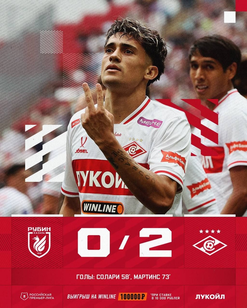 Очень хорошая, очень сладкая победа для Спартака, такого и ждал🔥 По факту гол пришёл чисто на индивидуальном мастерстве и дерзости, но это и требовалось. Браво, Солари👏 Ну а второй гол вообще квинтессенция нынешнего Спартака. Барко включился, развернул двоих, и далее потерял мяч, но извините, там рядом такой же мастер за 20+ млн🤷♂ Хотите Вы этого или нет, но Спартак будет прибавлять и по очкам и по игре. Уж слишком большой перевес по классу игроков😬 Ну а Рубин вроде всё правильно делал, но после пропущенного у него плана не было. Даку сожрали💪 На таблицу пока не смотрю, но с нетерпением жду следующий матч😌 А как Вам игра красно-белых? 👉 Подписаться на ФутХайп