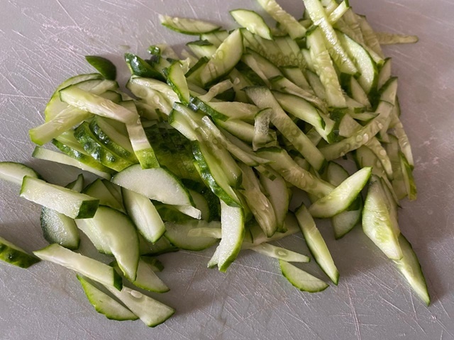 Друзья! Сегодня готовим быстрый и легкий в приготовлении салат. Для него нам понадобится: консервированная фасоль- 1 банка свежий огурец - 1 штука куриное филе- 200 граммов сухарики - полпачки майонез чеснок - 1-2 зубчика соль, перец (по вкусу) зелень (по вкусу) 1. Для начала нарежем соломкой огурец. 2. Отправим в салатник и добавим фасоль. 3. Добавим сухарики (у меня домашние). 4. Затем порезанное соломкой филе и чеснок. 5. Солим и перчим по вкусу, заправляем майонезом. По желанию можно добавить зелень. Отправляем салат в холодильник на 1 час и наслаждаемся его вкусом. Приятного аппетита! Не забудьте поставить лайк!