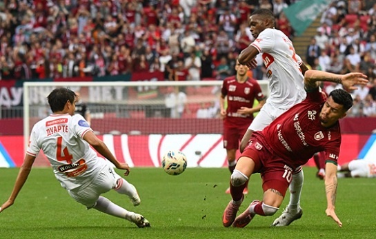 Спокойно попытался начать матч "Спартак", подержал некоторое время мяч без разгона. А вот "Рубин" после перехвата решил ускориться и обострить. Первый набег москвичи отразили, но потом Кабутову удалось заработать угловой. Оставшиеся после его розыгрыша Вуячич и Тесленко устроили перспективный розыгрыш. Прострел первого во вратарской второй чуть не замкнул пяткой. В новой волне Даку перед штрафной заработал стандарт. С него Шабанхаджай пробил мощно, но в стенку. "Спартак" ответил на этот отрезок активности, правда, не столь остро. Но мяч перехватил. Единоборств и противостояний в центре поля стало больше. Москвичи пытались доминировать с контролем территории, а "Рубин" неплохо прессинговал, не позволяя "красно-белым" расположиться на своей половине поля. Постепенно стал просматриваться акцент "Спартака" на атаки по левому флангу, где Маркиньос и Жедсон хорошо двигались. Маркиньос на 15-й минуте ускорился хорошо, прорвался к лицевой, но защитник помешал ему прострелить. Встряхнуть игру этот прорыв не смог, и она устаканилась в центре поля, где происходил взаимный прессинг, потери и перехваты. Без приближения к воротам. На 20-й минуте "Рубин" смог после такого перехвата заработать штрафной, но навес Кабутова никого не нашел. "Спартак" ответил серией навесов от Денисова и Маркиньоса. Они тоже ничего не дали. Как и прострел внезапно подключившегося Дуарте. Его пресекли. "Рубин" в середине тайма активизировал более высокий прессинг, провел серию единоборств, покусался в средней линии. А потом опять откатился к активной более глубокой обороне. Москвичам удалось разжиться штрафным на чужой территории. Розыгрыш подкачал. Зато во второй волне к воротам сумел проникнуть Угальде. Правда, он упал в борьбе и просил пенальти, что судья проигнорировал. Как и ВАР. И снова все свелось к суете на половине поля "Рубина", который не допускал, чтобы она переросла во что-то опасное. Прострелы, навесы, розыгрыши и прорывы не приносили никаких плодов "красно-белым". На 35-й минуте судья впервые достал желтую карточку. Это Йочич перестарался в борьбе с Угальде и заехал ему локтем в лицо. Подача с этого штрафного дошла до Литвинова, но его скидка после рикошета стала легкой добычей вратаря. Он следом взял небольшую паузу, присев на газон. После заморозки сумел вернуться в игру. А "Спартак" наконец-то свое территориальное преимущество стал превращать в остроту. Очередной штрафной гости использовали опасно. Барко с него зарядил мощно, и мяч просвистел рядом с девяткой. Потом Угальде навязал борьбу у чужой штрафной, оголилась зона, и в нее влетел Барко, оставшись один в один с последним защитником. Эсекьель пробил, однако Ставер справился. Перед самым перерывом в наступление сходил и "Рубин". Но забросы и парочка стандартов не принесли плодов – только Даку в чужой штрафной Дуарте по ноге смог дать.
