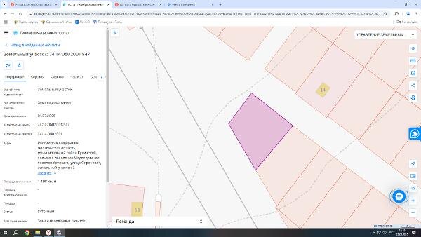 Название: Земельный участок с кадастровым номером 74:14:0502001:547, общей площадью 1498 кв.м, вид разрешенного использования -для