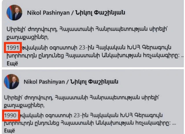 👀 Премьер Армении Никол Пашинян перепутал дату принятия Декларации о независимости страны, поздравляя граждан с ее годовщиной