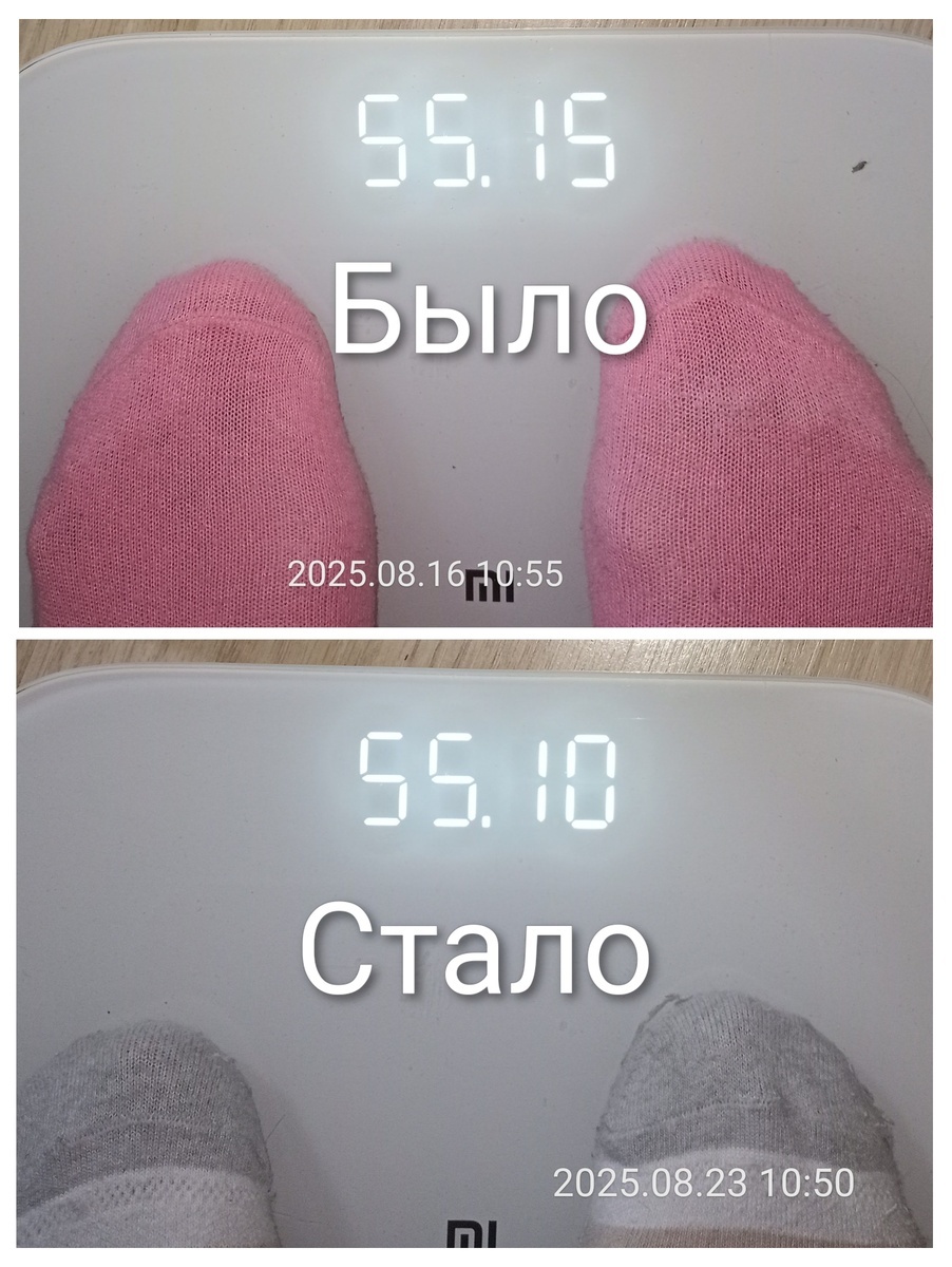 127-е очередное субботнее взвешивание 23.08.25 | Хронометраж похудения с 82 кг. Всем привет! С Вами Татьяна, пенсионерка. Мне 74 года, рост 151 см, вес 55,1 кг ✅ 27.02.23 мой вес был 82 кг. В процессе своего похудения за 2 года сбросила 26 кг лишнего веса. Цель - поддерживать нормальный вес 54-55 кг. *** За прошедшую неделю минус 0,05 г 16.08.25 было 55,15 кг 23.08.25 стало 55,1 кг **************************** Вес без изменений. **************************** Начало моего похудения 27.02.23 было 82 кг 23.08.25 стало 55,1 кг Минус 26 кг