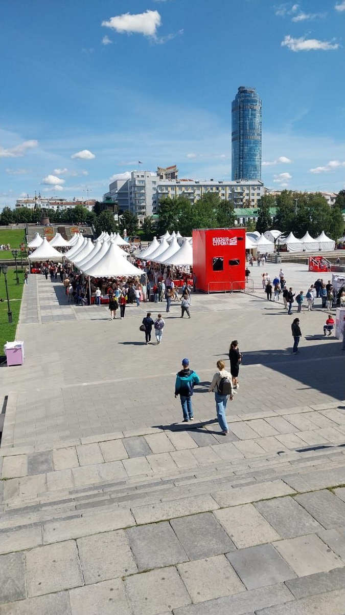 Погода в Екатеринбурге сегодня намного лучше, чем в Москве. Фестиваль "Красная строка" стартовал. Веркин уже выступает. Я сам в Москве, но радуюсь за екатеринбуржцев. Книжные фестивали в хорошую погоду - кайф.
