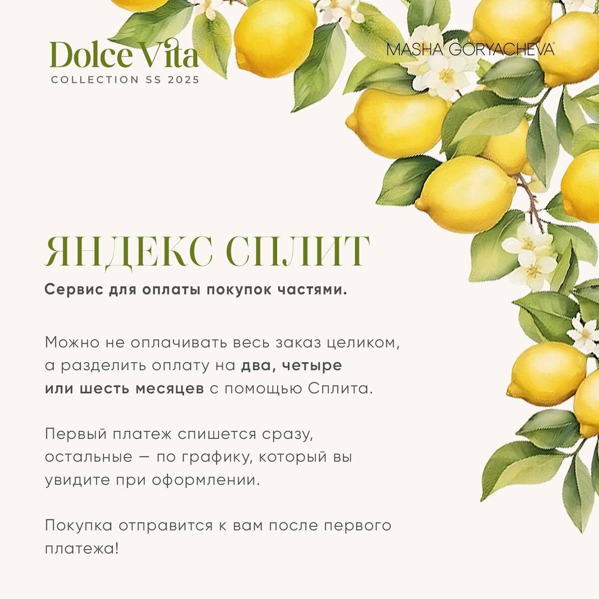 Хрусталинки, с заботой о вашем бюджете в нашем бренде теперь доступен Яндекс Cплит — сервис для оплаты покупок частями. Можно не оплачивать весь заказ целиком, а разделить сумму покупки на два, четыре или шесть месяцев с помощью Сплита. Первый платеж спишется сразу, остальное — по графику, который вы увидите при оформлении. Забрать свою покупку вы сможете сразу после первого платежа! Оформить заказ Для заказа перейдите в официальный чат с онлайн-менеджером 📲