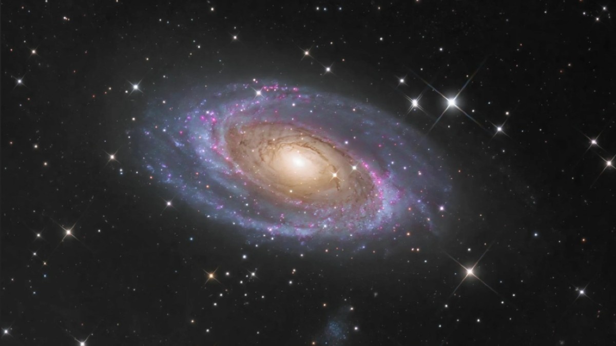 Галактика Боде (Мессье 81) Галактика Мессье 81 (или просто Боде) – это спиральная галактика, расположенная в созвездии Большой Медведицы. Она удалена от Земли на 11,8 миллионов световых лет и имеет видимую величину 6,94. В новом общем каталоге эта галактика обозначена как NGC 3031. Мессье 81 занимает участок неба размером 26,9 на 14,1 дуговых минут, что соответствует линейному диаметру около 90 000 световых лет. Эту галактику можно легко наблюдать в бинокль, где она выглядит как тусклое пятно света. Однако для более детального изучения её спиральной структуры требуются телескопы большего размера. В 3-дюймовые телескопы М81 выглядит как туманное, яркое овальное пятно, а в 6-дюймовые – как яркое ядро, окружённое слабым ореолом. Галактику Боде можно найти примерно в 10 градусах к северо-западу от звезды Дубхе. Лучшее время для наблюдения за ней – весна. М81 является частью группы галактик, включающей около 34 объектов в созвездии Большой Медведицы. Среди них – галактика Сигара (Мессье 82)