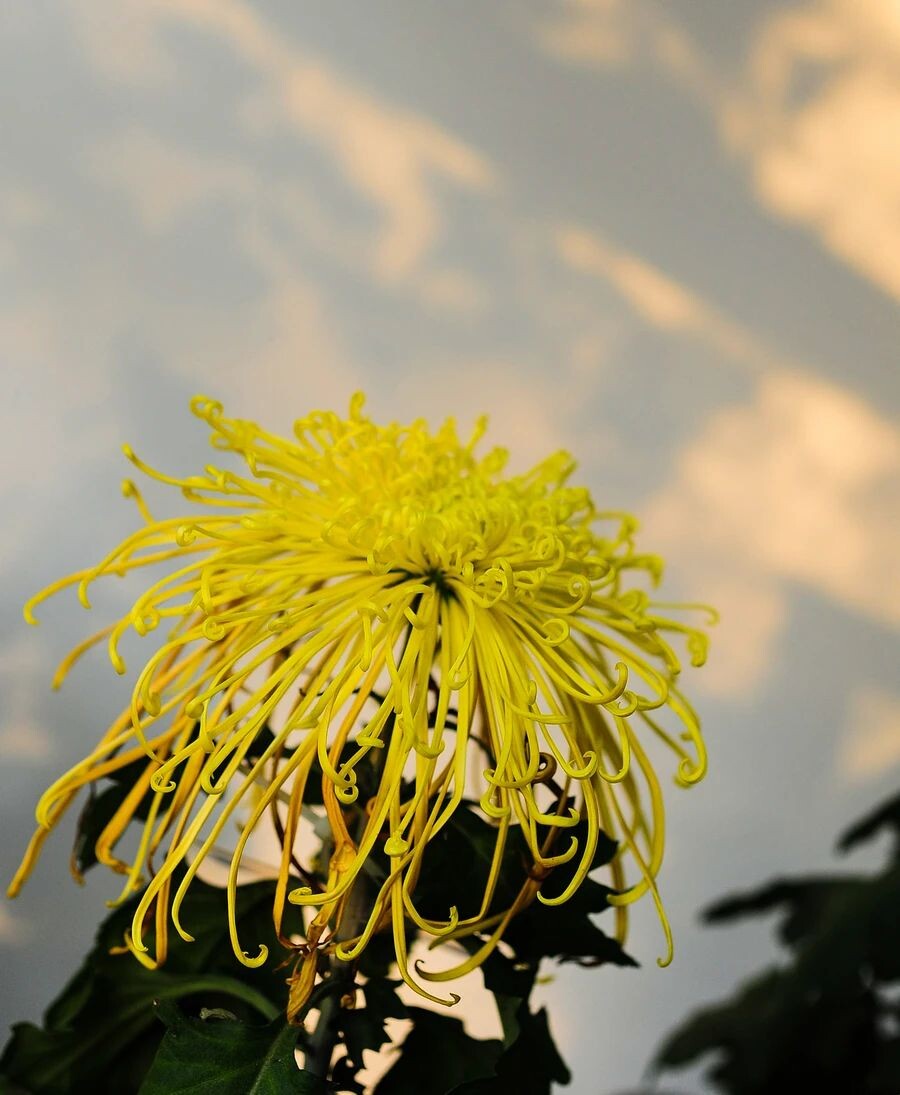 Хризантема Цзюйхуа (菊花) в древнем Китае имела также другие названия: «Праздничный цветок» 节华, «цветок обновления» 更生, «золотой венчик» 金蕊, «цветок изобилия» 周盈, «цветок долголетия» 延年 и др.。 Её культивируют в Китае уже более трёх тысяч лет. Начиная с Сунской эпохи (宋朝), ежегодно проводились праздники хризантем. И поныне на праздник Двойной девятки (重阳节) сохраняется обычай пить вино, любоваться цветами хризантем и есть крабов. В эссе Фэн Цзыкая (Fēng Zǐkǎi 丰子恺) «Осеннее питие вина с хризантемой» (秋饮黄花酒) отмечается символика цветка. Хризантема расцветает в девятом месяце. Число «девять» (jiǔ 九) созвучно слову «долго, продолжительно» (jiǔ 久), поэтому хризантема стала символом долговечности и долгой жизни. Различные композиции узора с хризантемой: Кроме того, поэт Цюй Юань (屈原) в «Ли Сао» (离骚) писал: «На закате вкушаю осыпавшиеся лепестки осенней хризантемы» — постепенно хризантема стала олицетворением высоких, утончённых моральных качеств. Различные композиции узора «хризантем» встречаютс