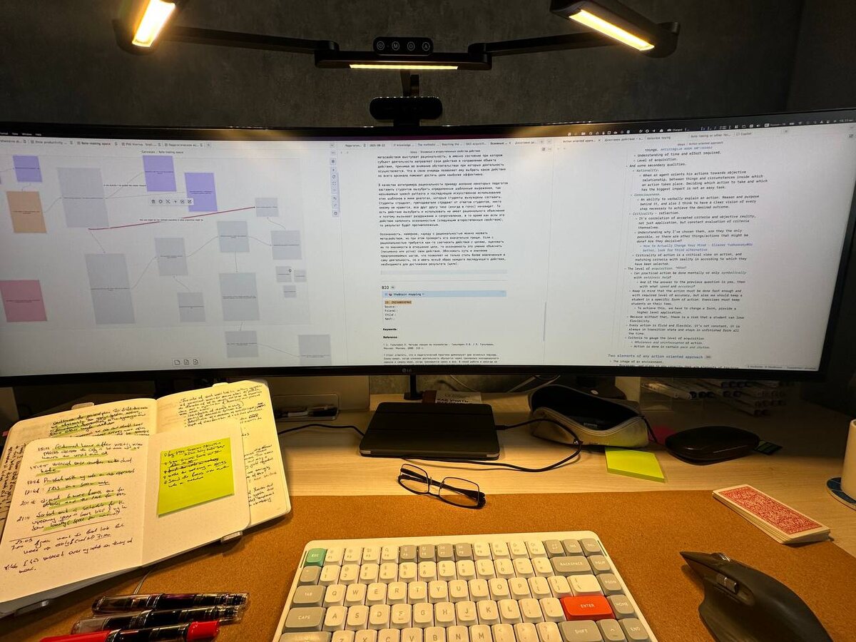 ### Немного о текущей работе Когда я закончил работу над историографией развития познавательных функций, спросил, о чём бы вы хотели почитать, и предложил несколько тем. Бóльшая часть откликнувшихся захотела узнать об освоении “сложного” навыка. Я, наивно полагая, что это проще, чем написать про феномен “второго мозга”, набросился на эту тему, ожидая “лёгкой прогулки”, но… ларчик оказался не с самым простым замочком. Мне приходится постоянно дополнять и дорабатывать идеи; появляются новые направления, в которых можно раскрыть мысль. Из пяти написанных эссе самым сложным пока было эссе про основные и второстепенные свойства действия (деятельности). Постоянно приходится возвращаться к работам Гальперина и Выготского, переносить их мысли на современный контекст, обновлять, исходя из моего понимания и практики, и приводить примеры из своей работы. Я начал работу над эссе о свойствах действия 3 августа; прошло двадцать дней, а я только понял, как представить эту идею, чтобы она была хоть