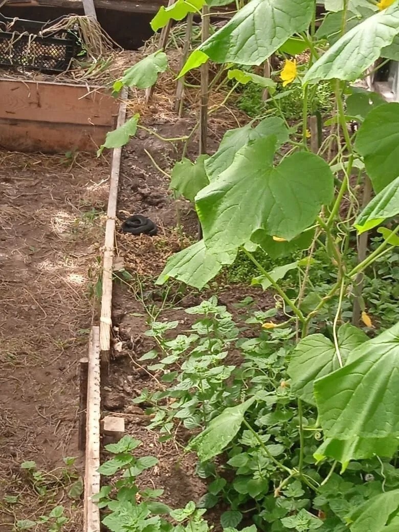 В к/с "Гудок-2" обнаружили змею черного цвета, длиной около 70 см, пухленькую
