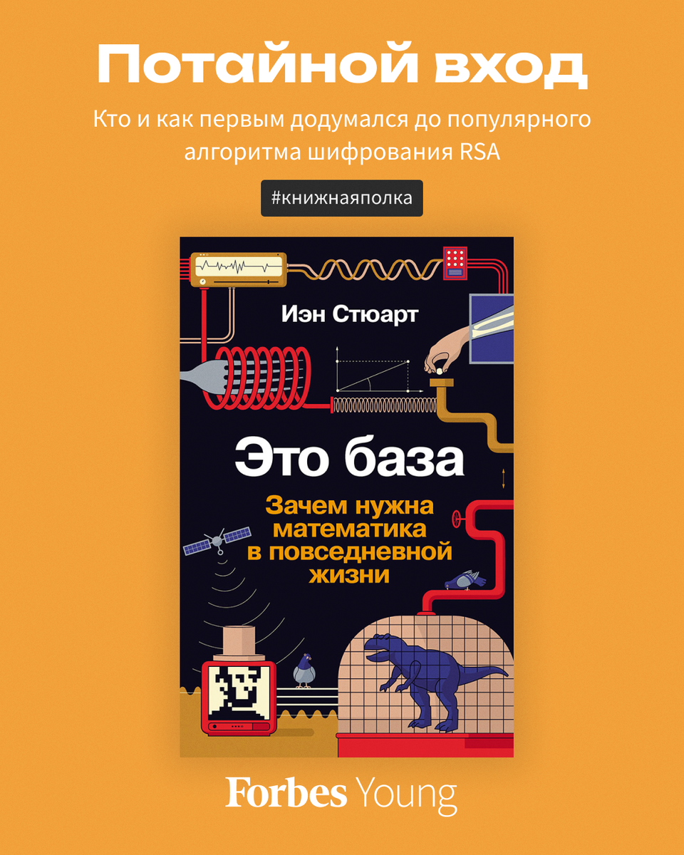 «Может показаться, что математика вышла из моды и устарела, но такой взгляд ошибочен. Без математики современный мир попросту развалился бы», — пишет в своей книге «Это база. Зачем нужна математика в повседневной жизни», которая вышла в издательстве «Альпина нон-фикшн», Иэн Стюарт, автор бестселлеров, популяризатор математики, член Лондонского королевского общества и почетный профессор Уорикского университета. Он рассказывает, что последние 2000 лет математика черпает вдохновение из трех основных источников: процессов в природе, потребностей общества и склонности к поиску закономерностей, свойственной человеческому разуму. Отрывок из книги «Это база. Зачем нужна математика в повседневной жизни» об основах систем шифрования и о том, кто первым придумал метод, который мы знаем как криптографический алгоритм RSA (аббревиатура от фамилий Ривест, Шамир и Адлеман), читайте на сайте Forbes #книжнаяполка @forbes_young