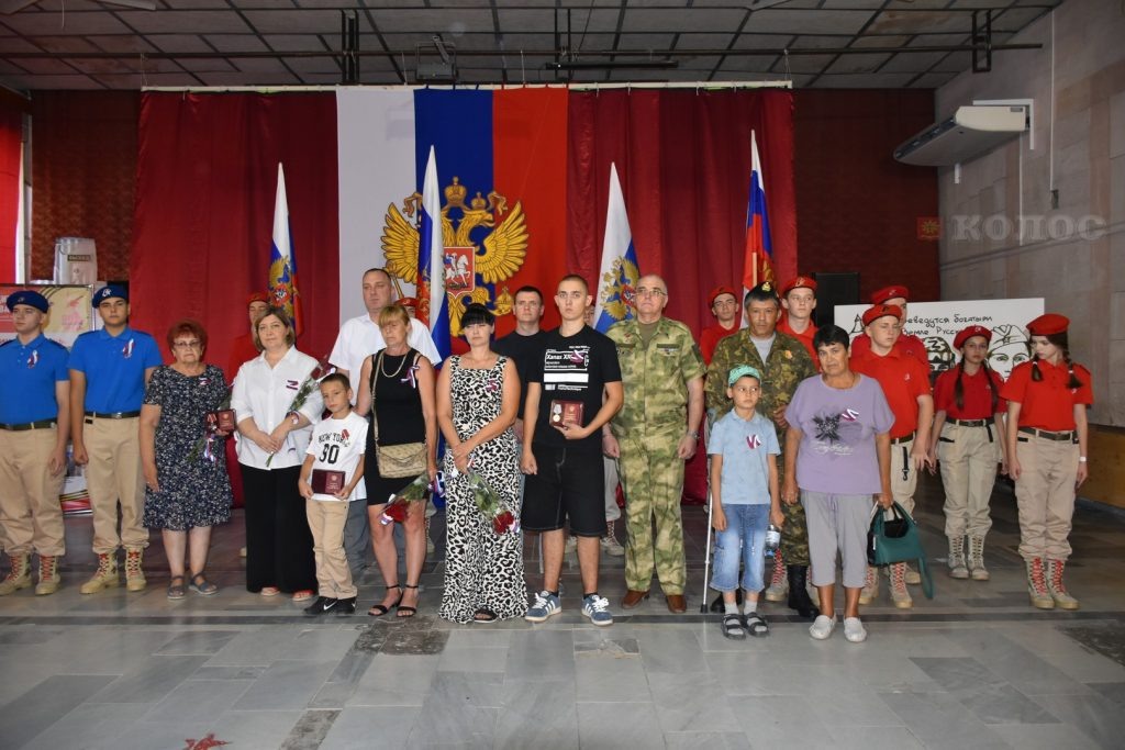 22 августа в РДК «Юбилейный» села Песчанокопского состоялся районный патриотический форум «Символ Родины моей», посвящённый Дню Государственного флага. В рамках форума состоялась патриотическая акция, посвященная главному символу страны – триколору, и расширенный прием участников СВО и членов их семей. Участники мероприятия смогли получить консультации у ряда специалистов, в числе которых были специалисты УСЗН, Социального фонда России, медработники, представители военкомата и координатор фонда «Защитники отечества» в Песчанокопском районе, юристы. Специалисты подробно разъяснили порядок оформления необходимых документов, рассказали о доступных льготах и программах реабилитации для ветеранов СВО. После приема в малом зале РДК в торжественной обстановке четырем семьям воинов, погибших в ходе специальной военной операции, были переданы государственные награды. Приветствовал собравшихся и.о. главы администрации Песчанокопского района Алексей Кравцов. Он поздравил всех с Днем Государственн