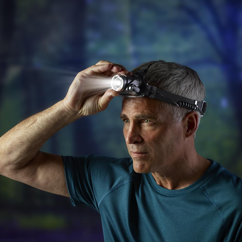 Фонарь должен комфортно сидеть на голове, не сползать и не давить. Регулируемый ремешок из эластичного и влагоотводящего материала — обязательное условие. Важна возможность регулировки угла наклона световой головы, чтобы направлять свет под нужным углом, не наклоняя при этом голову.