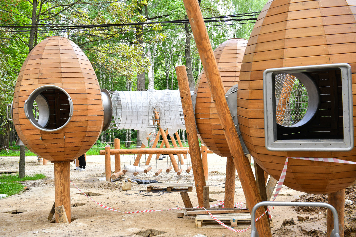 На территории парка Толстого в Химках обновляют детскую площадку