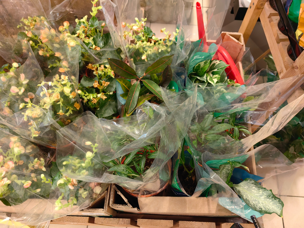 Обошла еще Перекрестки и Ленты местные, покажу оттуда репортаж отдельно) Ну а сегодня холодно на улице, у меня будет день пересадок. И надо на террасе повесить штору на дверь, а то растения уже будут не комфортно себя чувствовать. Там, конечно, температура выше, чем на улице, но входом служит пока не зашитая часть стены. Вот этот проем надо занавесить и будет потеплее. Домой пока не хочу всех забирать.