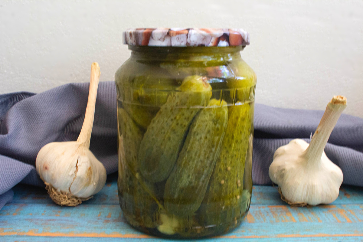 Удачный рецепт маринованных огурцов. Каждый год стараюсь испробовать хотя бы несколько новых рецептов маринованных огурцов и помидоров. Эти маринованные огурцы получаются хрустящие, вкусные, крепкие и ароматные. Ингредиенты даны на одну литровую банку, но рассола дано на литр и его будет больше. Так что лучше сразу делать хотя бы на две литровые банки, то есть огурцов взять около килограмма. Такие маринованные огурцы отлично хранятся при комнатной температуре. Съедаются они быстро, маринад хороший. Огурцы - 500 г. Чеснок - 2-3 зуб. Перец горошек - 3-4 шт. Перец острый свежий - по кусочку Укроп - по паре веточек Лавровый лит - по 1 шт. Лист хрена - по кусочку Зерна горчицы - по 1 ч.л. Уксус 70% - 1 ч.л. Рассол: Вода - 1 л. Сахар - 1.5 ст.л. Соль - 1 ст.л. Огурцы промоем и заливаем холодной водой, оставляем на пару часов или дольше. Это лучше сделать заранее. Раньше моя бабушка консервировала сразу большими количествами. Закупалось килограмм 20-25 огурцов, выкладывали их в большой таз, в
