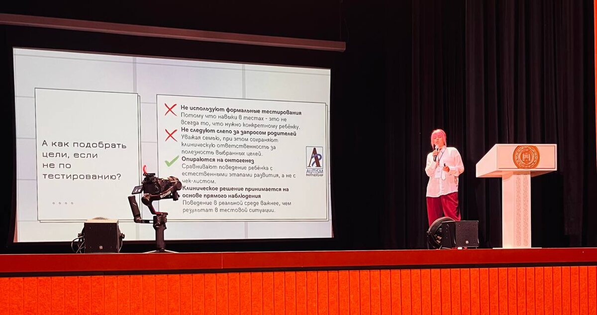 Ярослава Шушина - Поведенческие цели, которые работают Ребенок умеет на сессии не равно умеет делать тоже самое в жизни 😌 Откуда берутся мертвые цели?🎯 Работа только по результатам тестов и скриннинговых инструментов Цели по «привычке» - имитация, Лего, пазлы. Цели «на всякий случай Нет представления конечной цели, работа идет строго по протоколу Кейс Максима🧒🏻 с очень редким диагнозом, который может переводить взгляд только в одну сторону, аутизм, интеллектуальные нарушения, мальчику очень сложно дается выполнение заданий. Он не может произвольно поворачивать голову. У него были даже сложности с самостоятельным перемещением, так как он не удерживал равновесие Было видео с мамой и имитацией с предметом, на котором видно как мальчик старается взять любой предмет, чтобы повторить действие. Ярослава далее говорит о том, что мы не можем просто идти последовательно по клеточкам ABLLS и о том как мы можем по-другому выбирать цели, ориентируясь на опыт AP (Autism Partnership): •