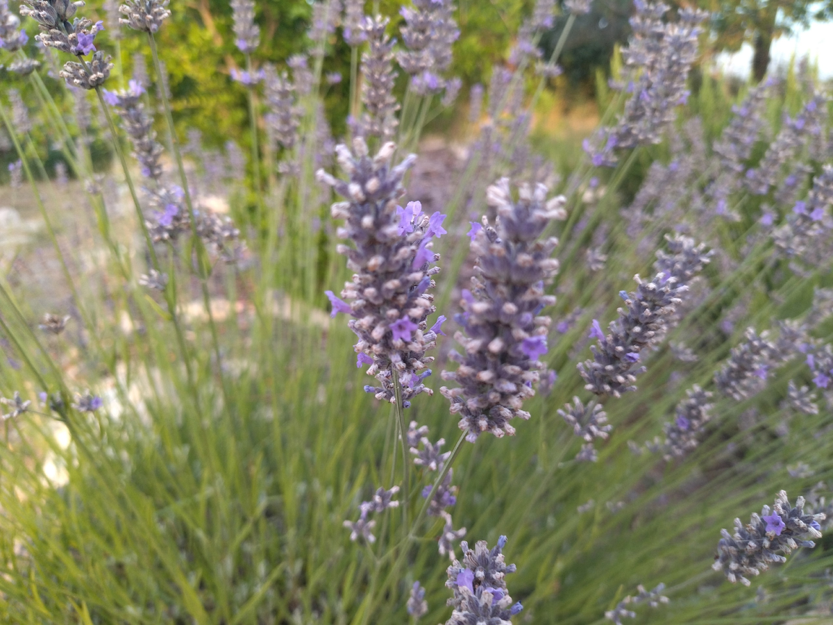 У меня лаванды много. Часть срезаю на засушку, на букеты то есть, в начале лета, а иногда и в конце весны, когда лаванда еще в плотных почках. Это зависит от погоды конкретного года и сорта, так как распускается лаванда год от года чуть в разное время: чем прохладнее, тем дольше не распускает почки, а значит и в засушке выглядит лучше и осыпается меньше, ну и разные сорта тоже распускаются чуть в разное время. Часть лаванды я просто оставляю цвести сколько ей цветется. Пышно цветет она обычно около месяца, но общая декоративность растягивается месяца на два точно, ведь отцветает она постепенно, долго не утрачивая сиреневых тонов. Не срезаю до тех пор, пока она не превращается вот в такие невзрачные палочки, а происходит это в августе, причем не со всеми сортами: Некоторые сорта не осыпаются вообще, и до конца августа стоят с засохшими соцветиями, выцветшие, но все же вполне себе декоративные. Смотрите, фото сделано недавно, а ведь уже конец августа: После полного отцветания лаванда