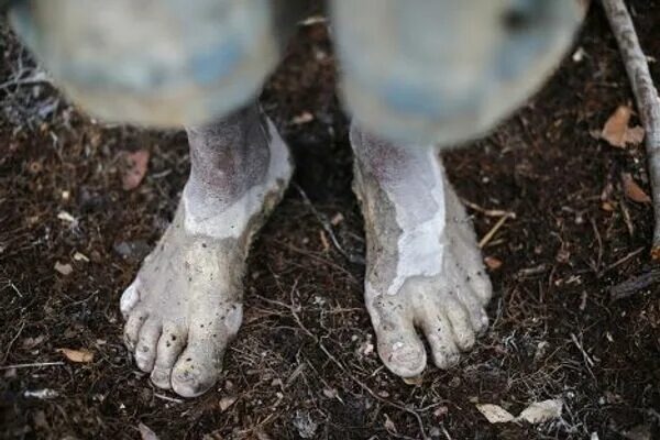 Они были в ужасном состоянии: покрыты гнойными ранами, на которые назойливо садились мухи. Он постоянно отмахивался от них, они у него живьём гнили. Рядом лежал тросточка.