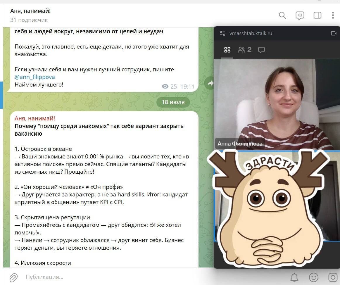 Вчера у меня была консультация с маркетологом Лайфак вам и инсайт мне (да-да, да гори я в аду с моими англицизмами) : всегда! Абсолютно всегда! Уточняйте часовой пояс Когда я назначаю встречи кандидатам я всегда пишу «по мск» А тут я не предала значения и вот, в 4 утра мне Анастасия пишет «ой? А у вас Москва?» 😁 Но мы встретились и вот что: 1. Все мои три канала (этот, Аня, нанимай - про подбор персонала, и Бочонок мыслей - с личными мыслями) будут теперь жить здесь 🙌 - общее название…вот тут меня пока разрывает, проголосуйте ниже, пожалуйста 2. Вы будете видеть все грани меня: - как строить карьеру - лайфхаки найма по обе стороны стола - как нанимать и растить команды - все, чем я занимаюсь, где учусь и что ем 🤭 (Поэтому я перенесу часть постов из других каналов сюда)