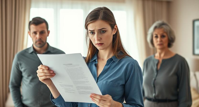 Тишина повисла в комнате как туго натянутый канат. Антонина Петровна побледнела, глядя на официальные бумаги с печатями. Её сын Игорь застыл между двумя женщинами, не зная, на чью сторону встать.