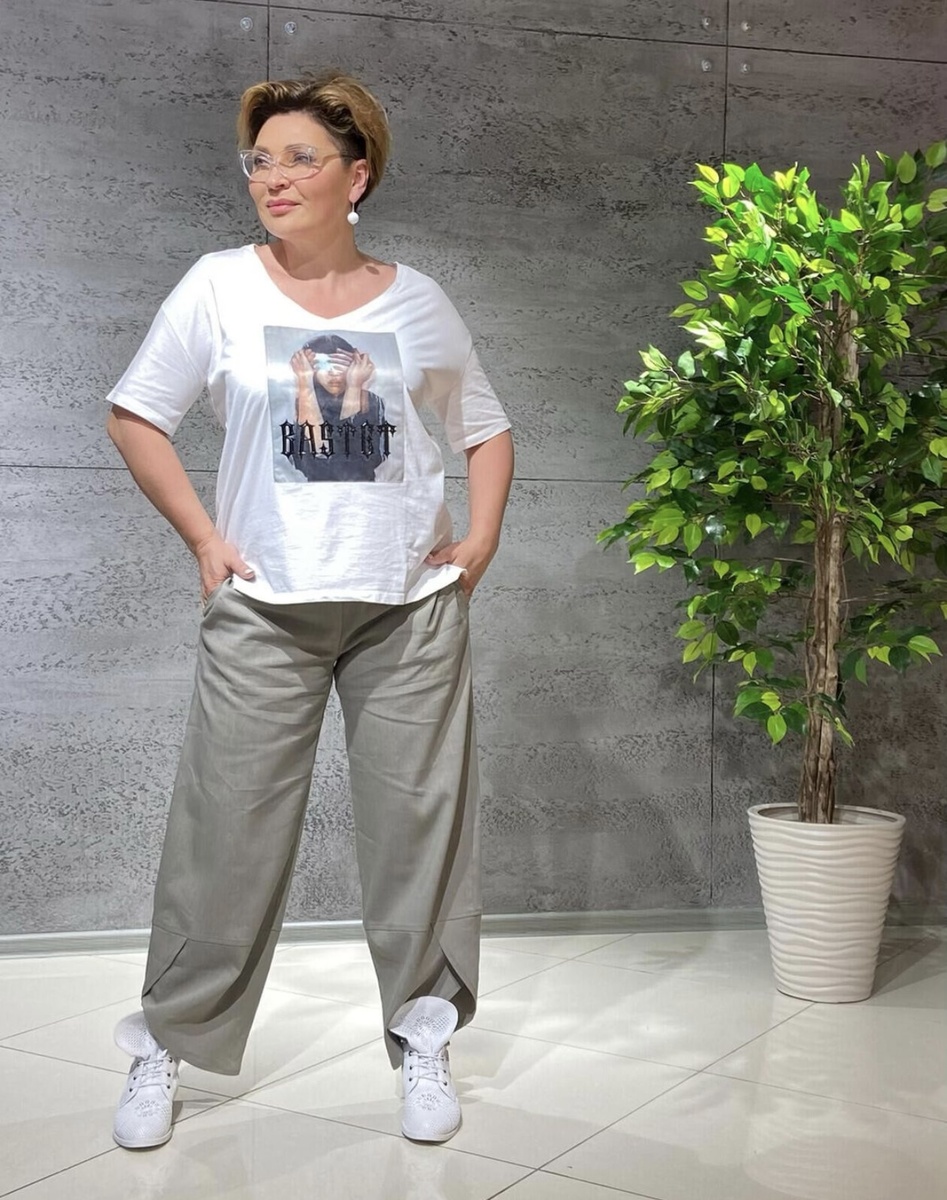 На днях встретила свою бывшую коллегу Татьяну. Ей 52, и она выглядела потрясающе в белой футболке, брюках и жакете. Когда я её об этом спросила, она рассмеялась: «А ведь ещё год назад считала футболки детской одеждой! Думала, что после 40 это неприлично». История Татьяны отражает заблуждение многих женщин элегантного возраста. Где-то в подсознании укоренилось убеждение, что футболка - это исключительно молодёжная вещь. Мол, серьёзной женщине полагается носить только блузки, рубашки и водолазки. Но модная индустрия 2025 года убедительно доказывает обратное. Футболка стала основой гардероба стильных женщин любого возраста. Главное - знать, как её подавать. И сегодня я покажу вам шесть безупречных способов носить футболку так, чтобы выглядеть элегантно и современно. Самый простой способ внедрить футболку в серьёзный гардероб - сочетать её с классическими вещами. Берём качественную футболку базового цвета: белую, серую или чёрную. Обязательное условие - хороший крой без обтягивания. Надева