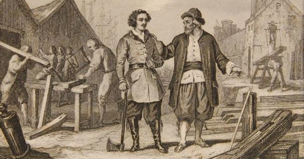 Царь-император строгал доски, учился у корабелов, таскал брёвна. Рабочие смеялись: «Великан с руками простого мужика». Но Пётр у