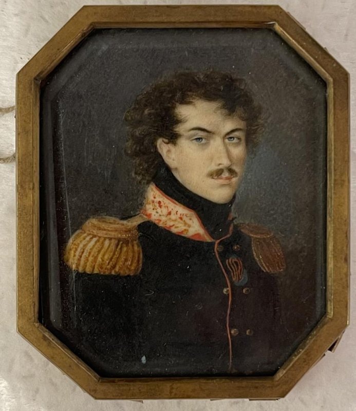В коллекции Государственного Русского музея хранится миниатюра на слоновой кости, изображающая молодого человека «в усах» и военном мундире. Личность персонажа неизвестна, поэтому в Госкаталоге музейного фонда предмет поименован просто «портрет военного», XIX в.